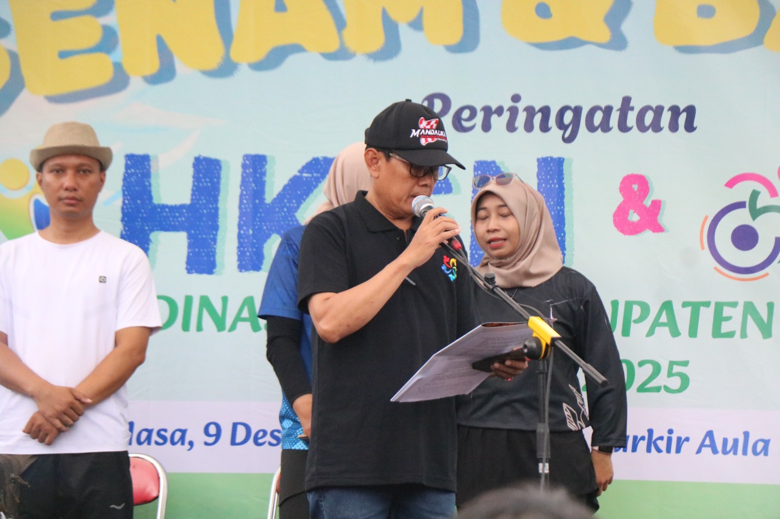 Acara diawali dengan apel peringatan HKSN dan HDI, dilanjutkan dengan penyerahan sejumlah bantuan simbolis, yaitu Bantuan Rumah Tidak Layak Huni (RTLH), Sertifikat PKH Graduasi, KIS APBD, alat bantu disabilitas, dokumen adminduk, bantuan modal usaha bagi penyandang disabilitas, serta bantuan sembako.