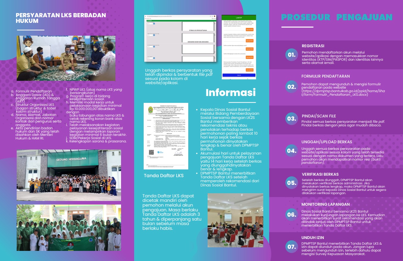 - DPMPTSP Bantul menerbitkan Tanda Daftar LKS setelah memperoleh rekomendasi dari Dinas Sosial Bantul.